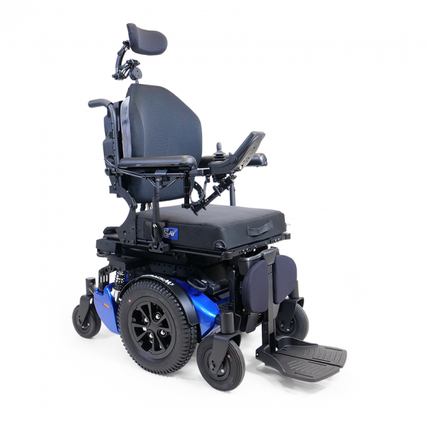كرسي متحرك يعمل بمحرك كهربائي ويتم التحكم به باستخدام ذراع تحكم أو أدوات تحكم بديلة (مثل أزرار أو أنظمة تحكم بالرأس أو التنفس)، وهو مخصص للأشخاص الذين لا يستطيعون دفع الكرسي اليدوي.