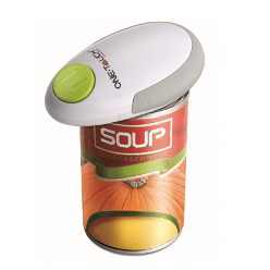 أداة كهربائية تُستخدم لفتح علب الطعام بسهولة دون الحاجة إلى جهد يدوي، وتُعد من الأدوات المساعدة المفيدة للأشخاص الذين يعانون من ضعف في قوة اليد أو محدودية الحركة الدقيقة في الأصابع والمعصم.