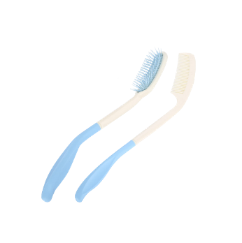 مشط وفرشاة شعر مزودة بمقبض طويل وممتد لتسهيل تمشيط الشعر دون الحاجة لرفع الذراعين بشكل كامل.