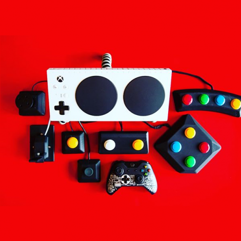 يركب المرفق ( سواء يتم التحكم عن طريق الفم، المرفق، القدم إلخ) كـجهاز تحكم باللعبة، وذلك على حسب الحالة.