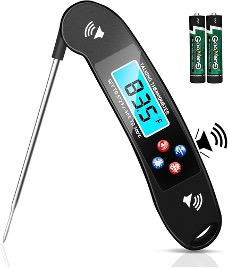 مقياس حرارة رقمي مخصص للطهي مزود بخاصية الإعلان الصوتي لدرجة الحرارة، حيث يقوم الجهاز بقراءة درجة الحرارة بصوت واضح بعد القياس. صُمم هذا النوع لمساعدة ذوي الإعاقة البصرية وضعاف البصر على معرفة درجة حرارة الطعام أثناء الطهي دون الحاجة إلى قراءة الشاشة.